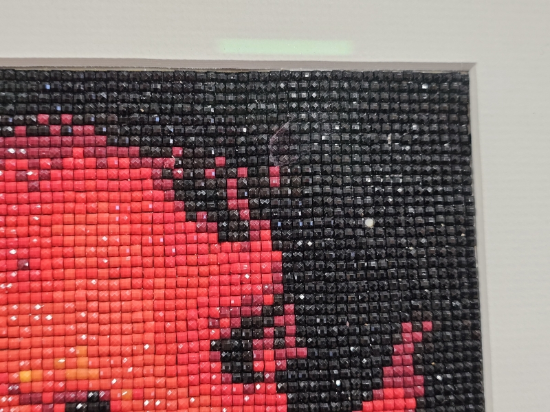 Yksi helmi irti. Kehyksineen 57cm x 47cm