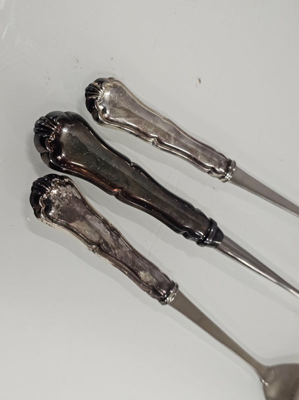 #1353 - Hopeiset chippendale salaattiottimet & iso kauha, 830h, br. 309g