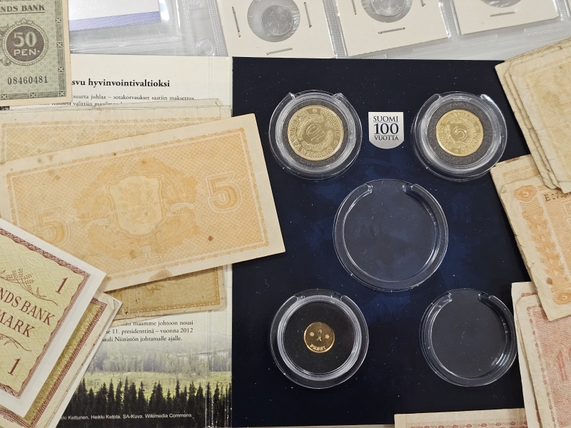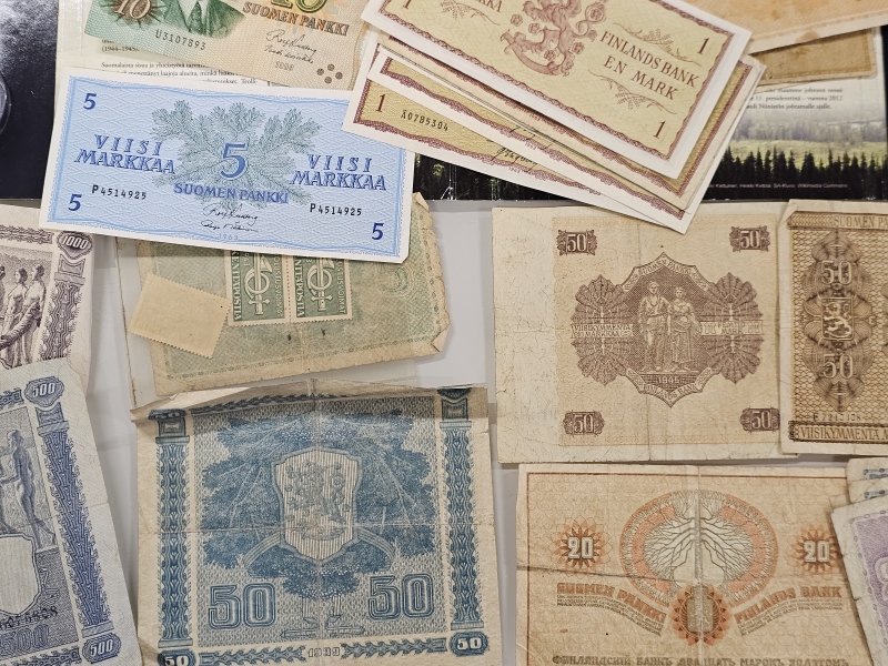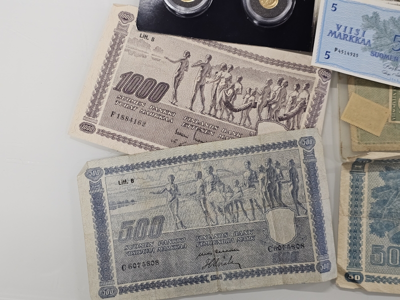 #1374 Erä vanhoja rahoja [mm. 1000mk 1945], Mannerheim -kokoelma ym.