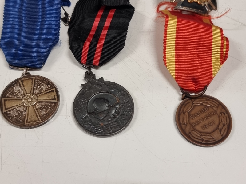 #1745 Erä kunniamerkkejä, mm. Kenttätykistön pronssimitali, 813h 15g