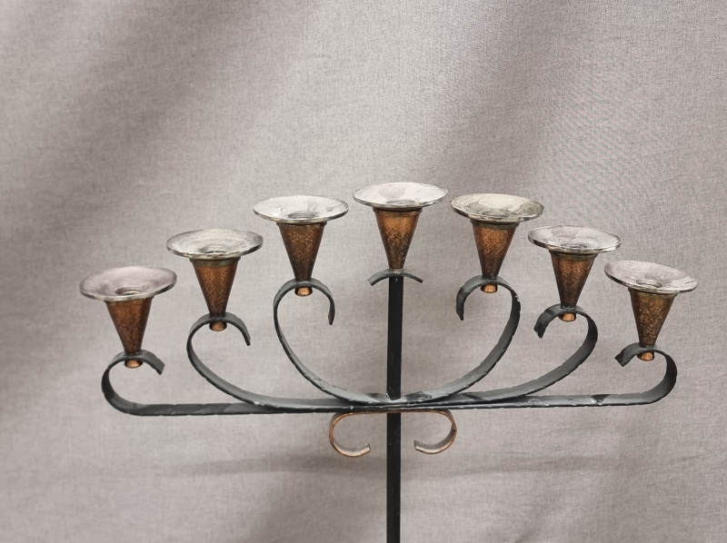 #2058 - 7-haarainen takorautainen lattiakynttelikkö irrotettavilla manseteilla.