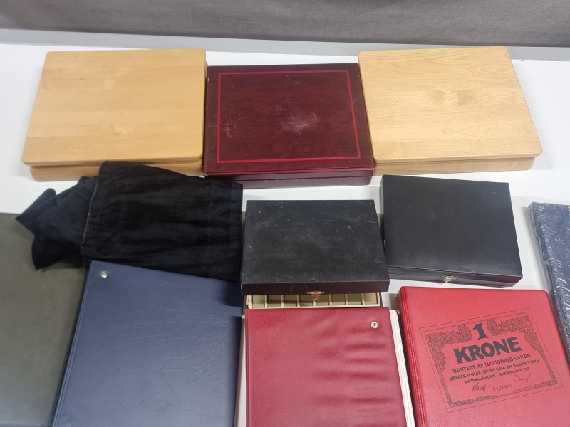 #2309 - Erä tyhjiä rahalaatikoita ja kansioita. Mukaan kellojen/korujen säilytyspussi