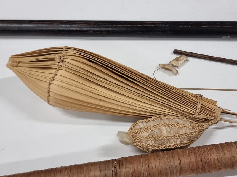 #1649 - Vanha metsästyspuhallusputki + tarvikkeita