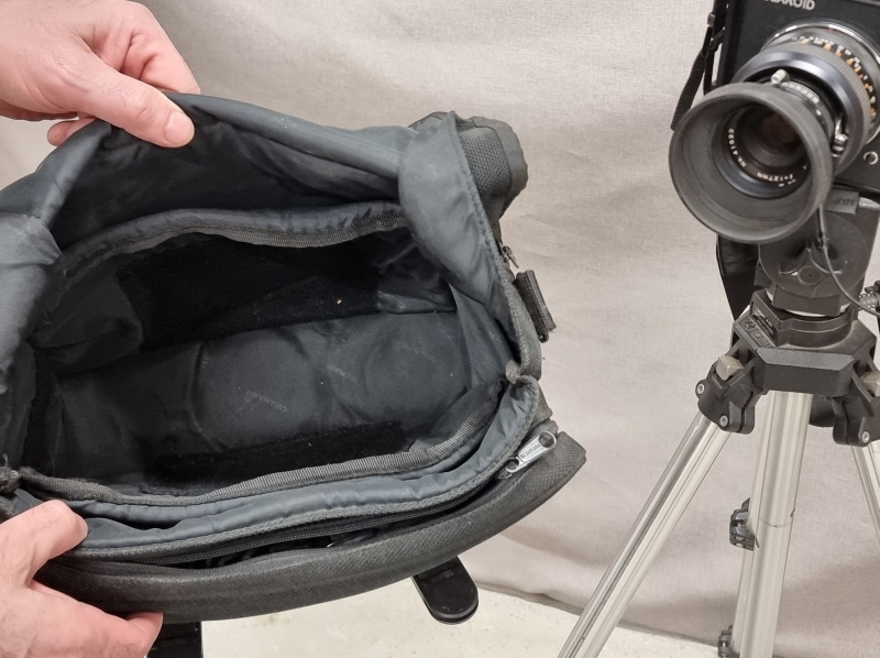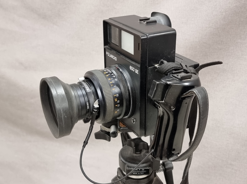 #2120 - Polaroid 600 SE kamera, jalusta ja säilytyslaukku