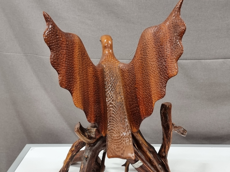 #2068 - Iso lintuaiheinen puuveistos sign. H. Nyström 1971