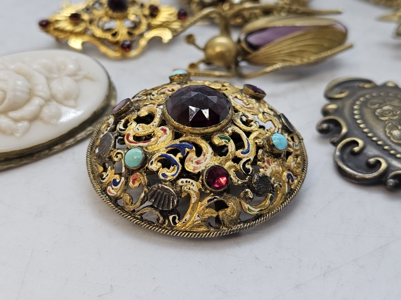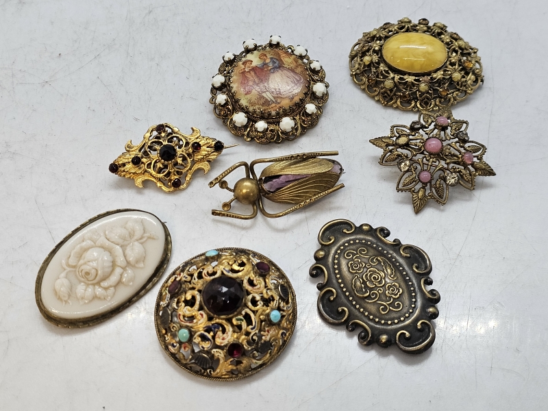 #1414 - 9kpl hienoja vanhoja rintakoruja