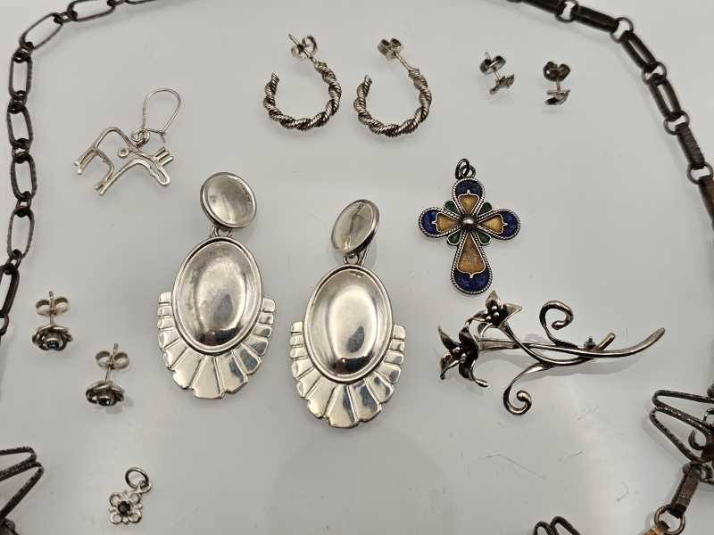 #1428 - Hopeinen kaulakoru + erä muita hopeakoruja