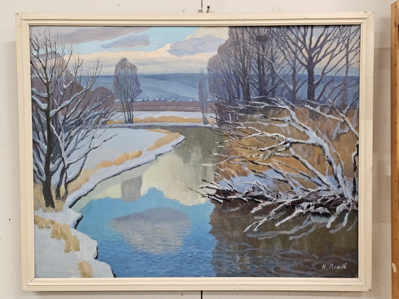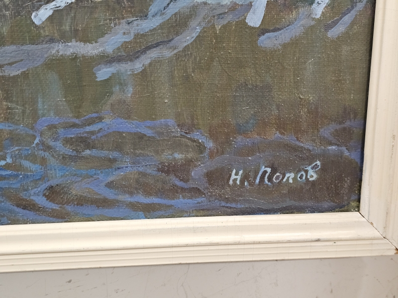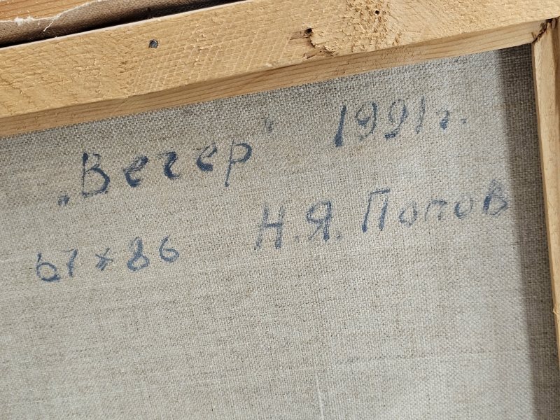 #2079 Öljyvärimaalaus, signeerattu kyrillisin N. Popov, "Ilta"