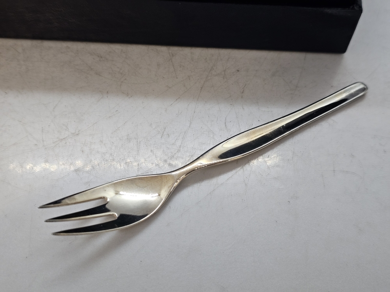#1446 6kpl hopeisia Tapio Wirkkala haarukoita, 830h, 150g + laatikko