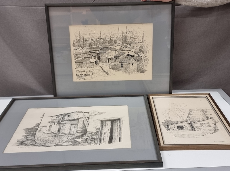 #2283 - 3kpl painokuvia J.P. Thompson Kakopetria
