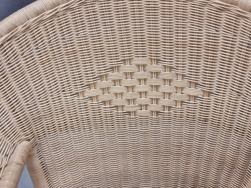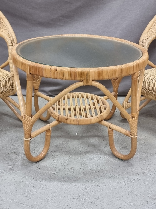 #2132 Rottinkipöytä ja kaksi rottinkituolia pehmusteilla