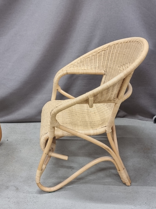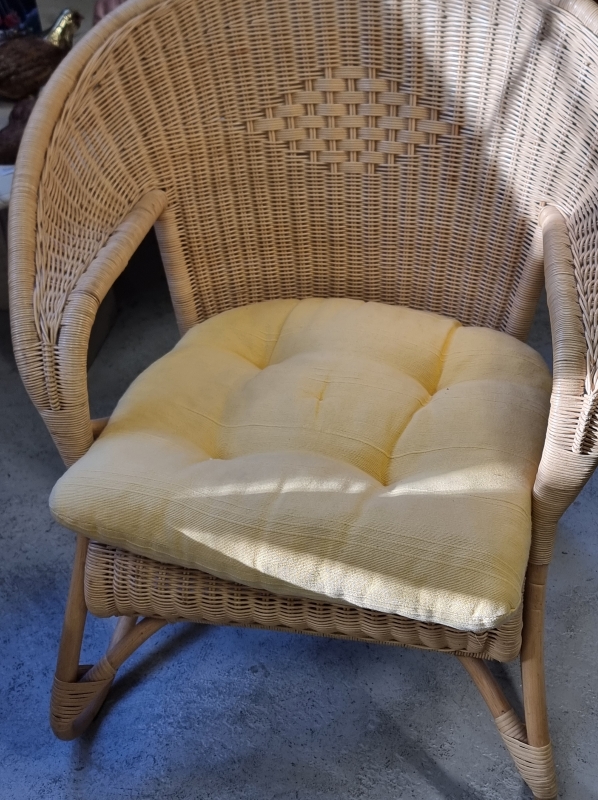 #2132 - Rottinkipöytä ja kaksi rottinkituolia pehmusteilla
