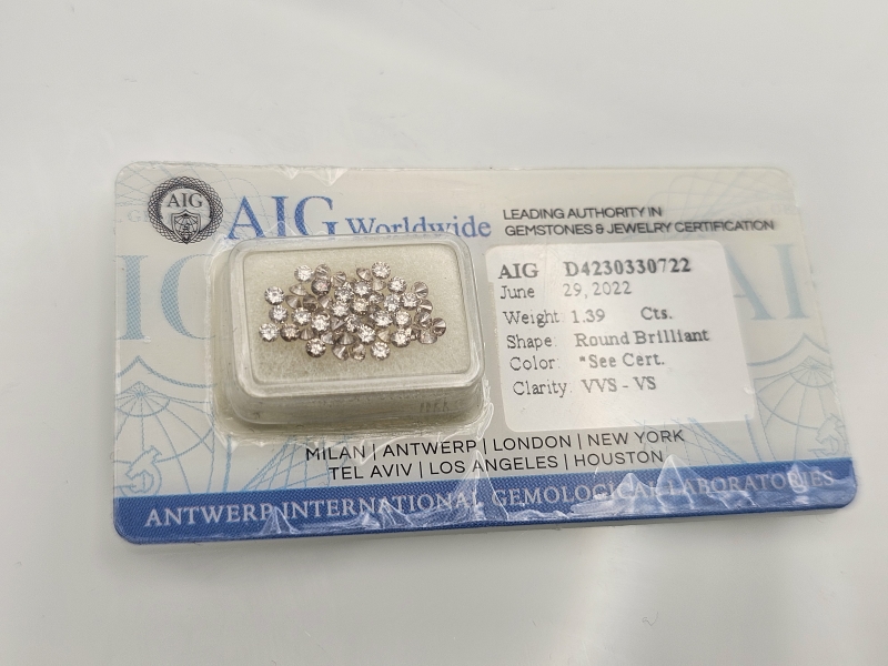 #1470 49kpl irtotimantteja AIG -todistuksilla, yhteensä 1,39ct