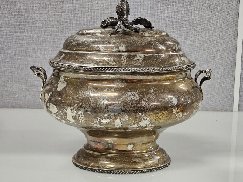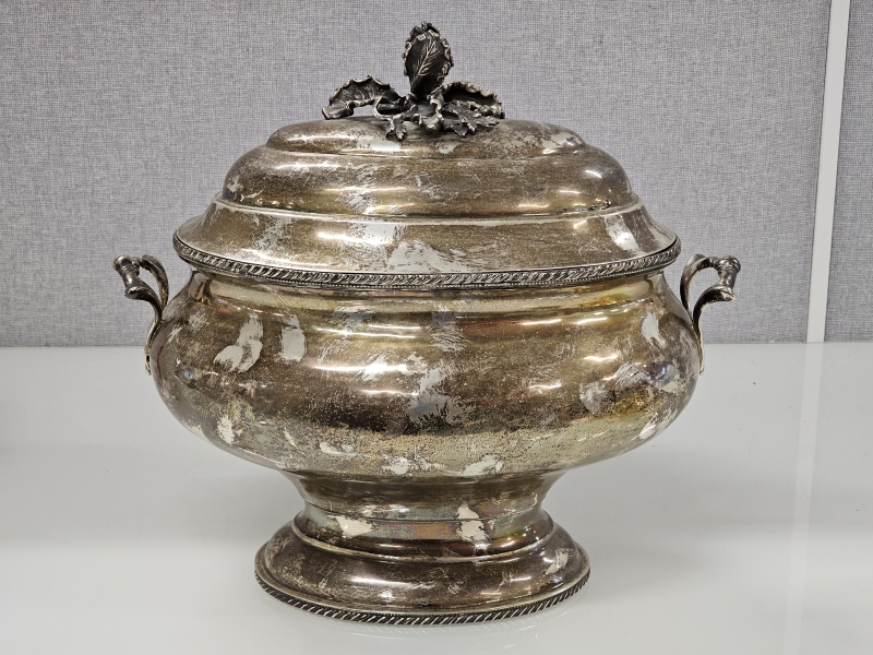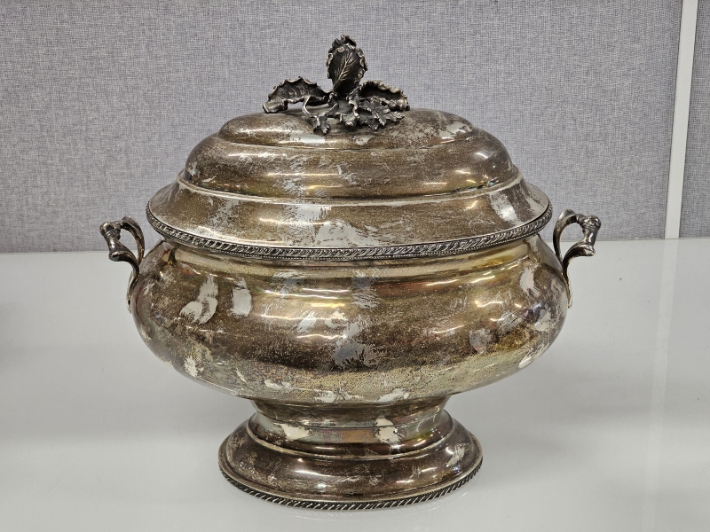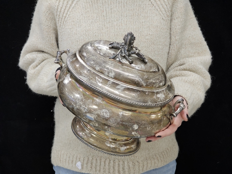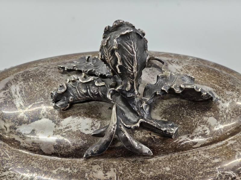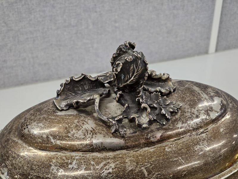 #1475 Isokokoinen hopeinen käsityönä valmistettu kannellinen astia, 925h, 2000g