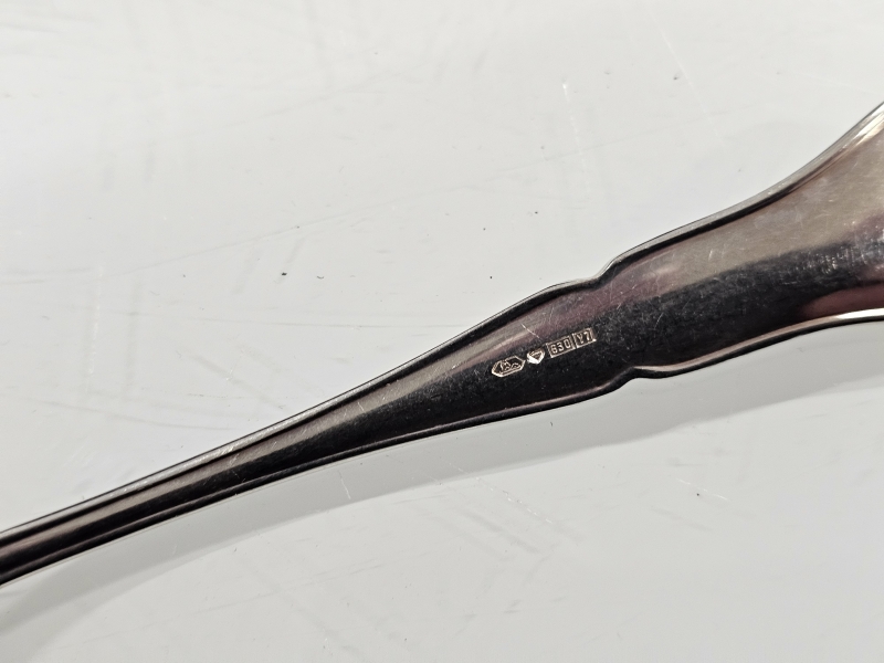 #1477 Hopeiset chippendale -aterimet laatikossa, 830h, 794g + br. 881g