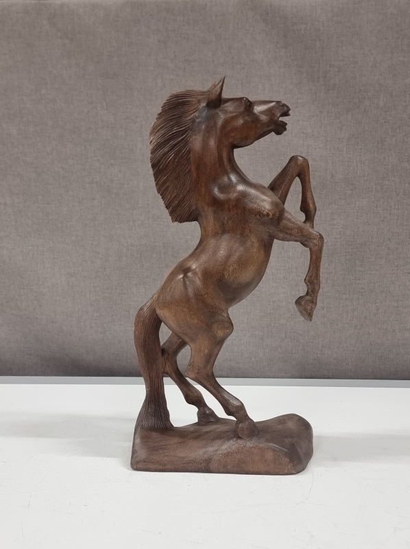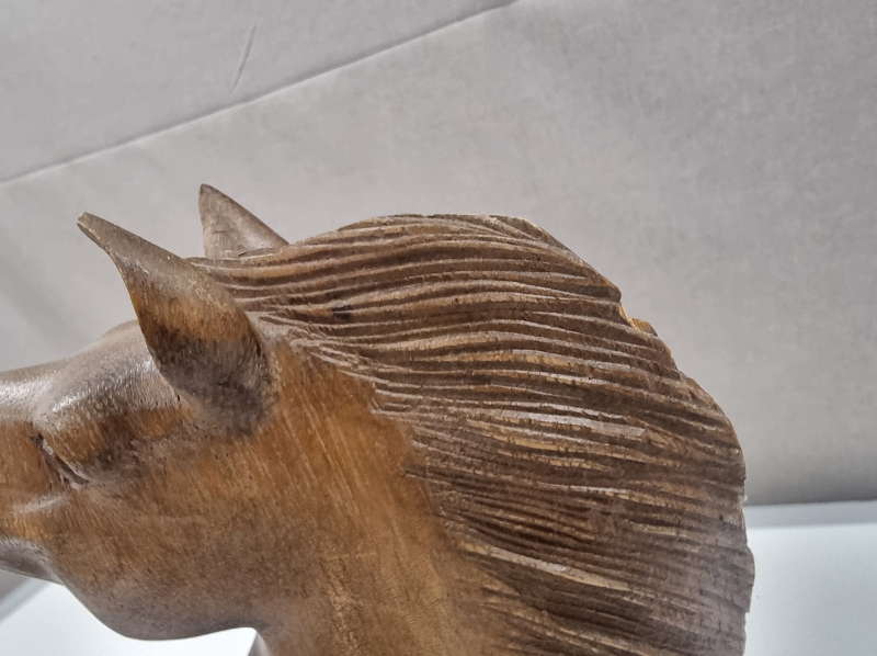 Hevosen korvasta ja harjasta pala pois. Korkeus 40,5cm.