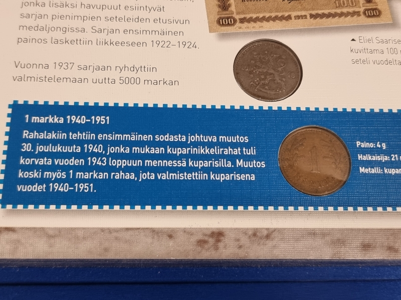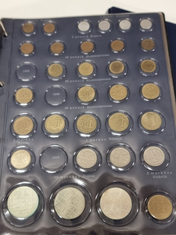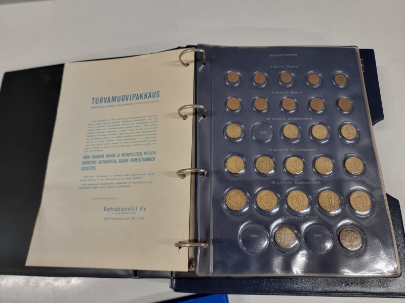 #1510 - 3 kansiollista suomalaisia kolikoita: Mm. Suomen rahahistoria 500-900h