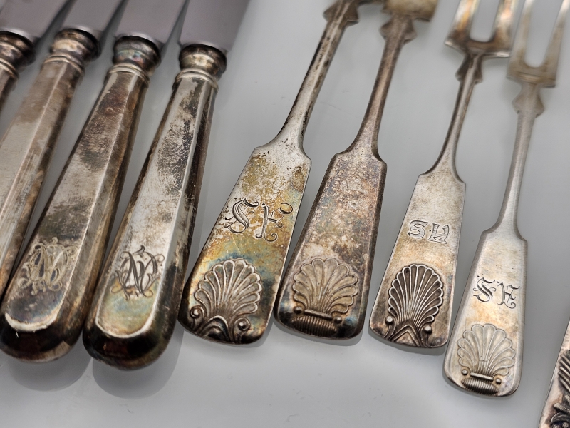 #1486 Erä hopeisia musla -ottimia, 813-830h, 93g + teräskärkiset 354g