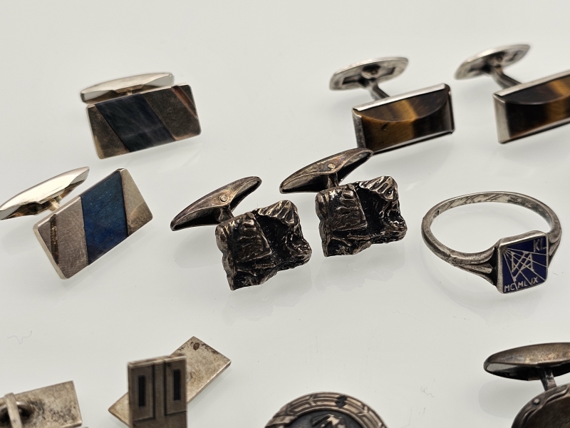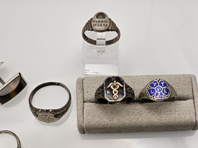 #1520 - Erä hopeakoruja, mm. sormuksia emaleilla, 813-925h, br. 78g