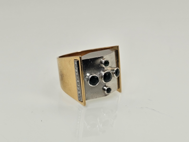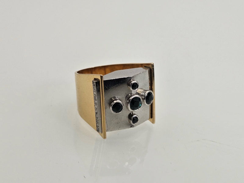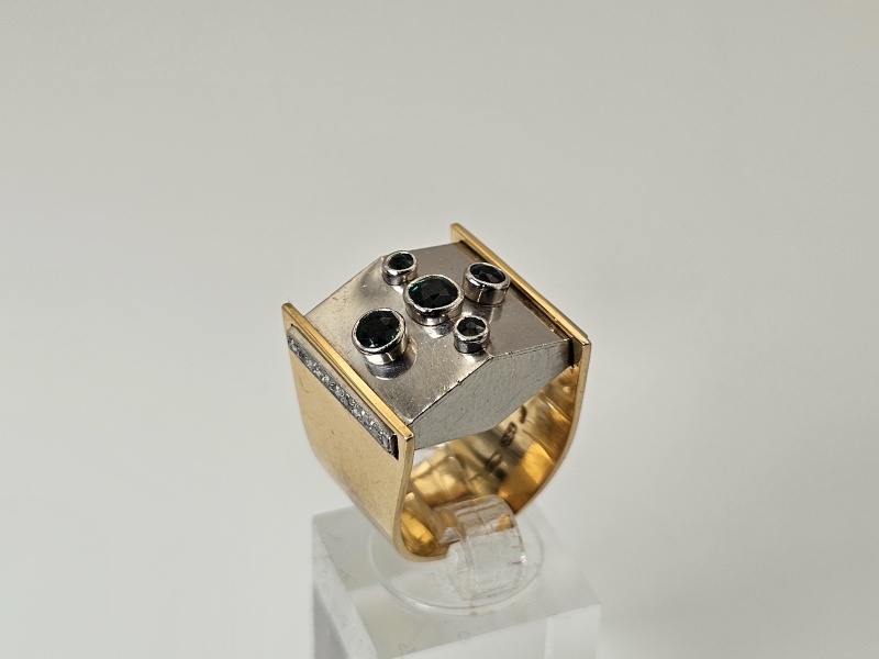 #1583 14k kultainen / valkokultainen sormus timanteilla ja smaragdeilla, Alppikulta Oy, 18,06g