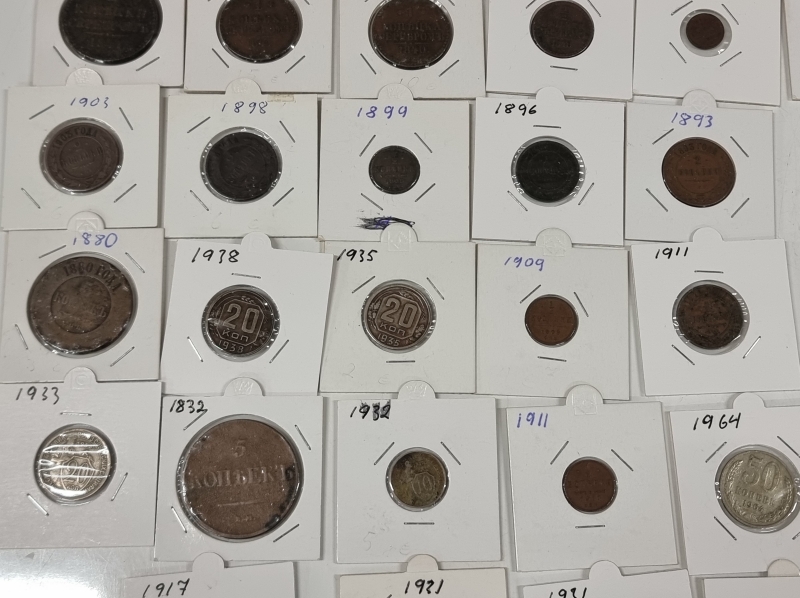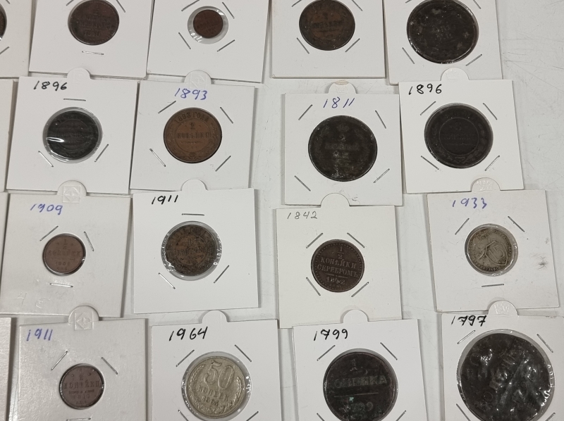 #2296 55kpl venäläisiä kopeekoita v. 1797 - 1915