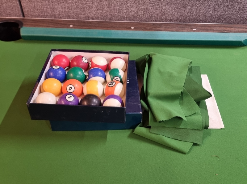 #1858 Biljardipöytä, säätöjaloilla + pallot