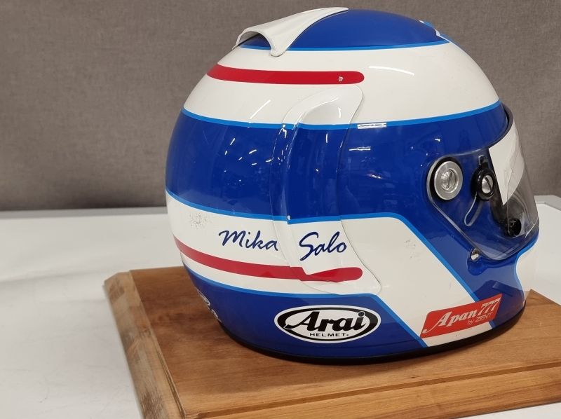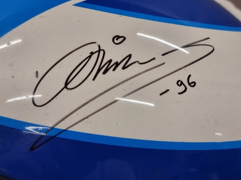#808 Mika Salo, F1 virallinen kilpailukypärä Mika Salon nimikirjoituksella v. 1996