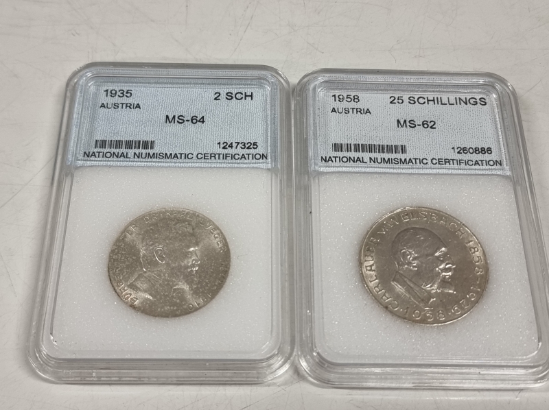 #1575 3kpl itävaltalaisia hopeakolikoita: 2kpl 25 shillinkiä + 1 kpl 2 shillinkiä. 640-800h