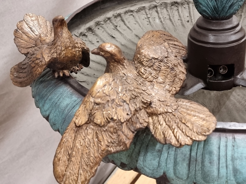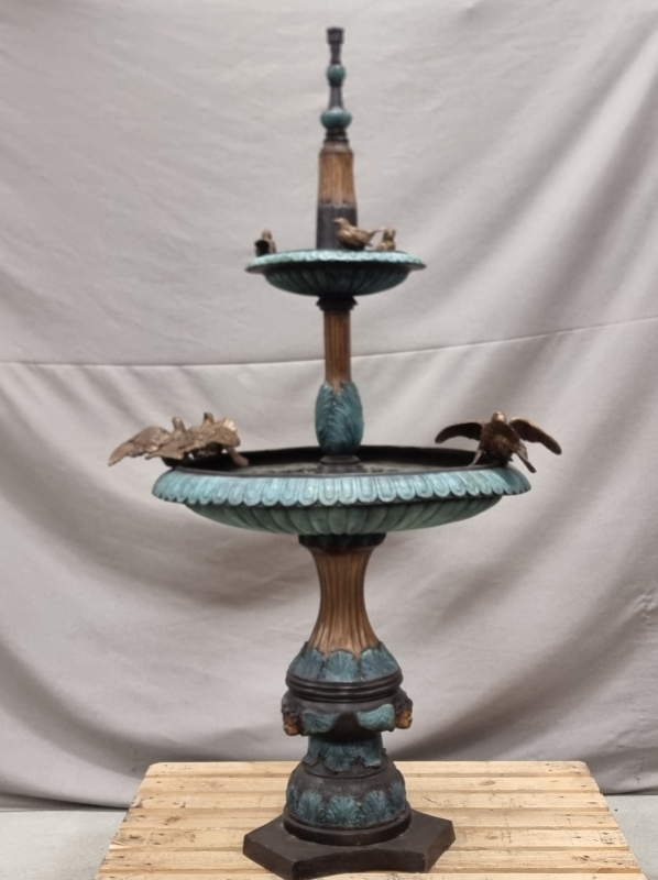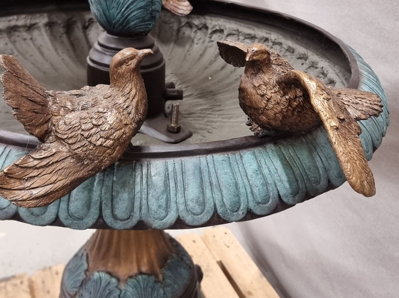 #1801 - Näyttävä pronssinen suihkulähde lintukoristeilla. 21-pisteisellä suihkupäällä