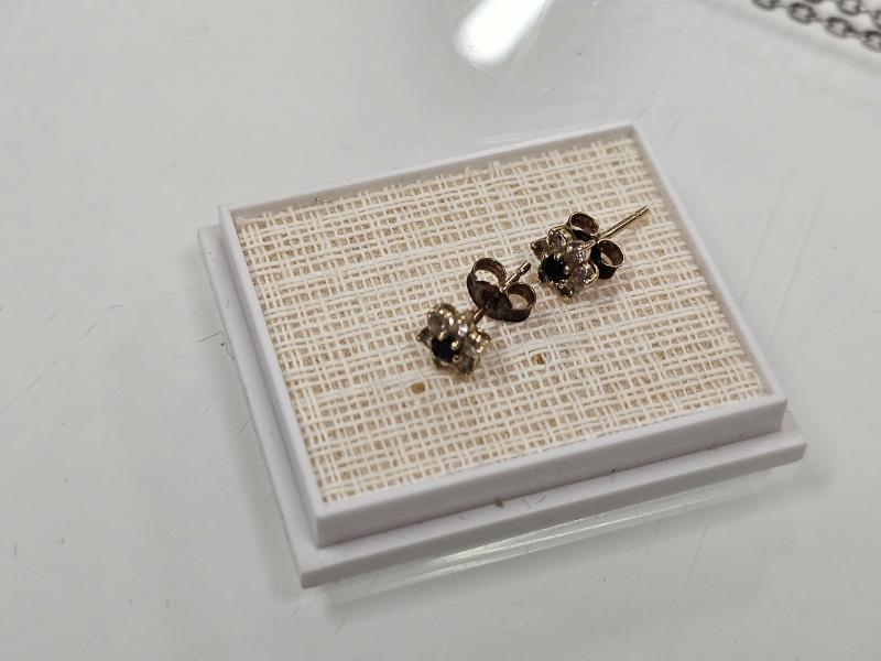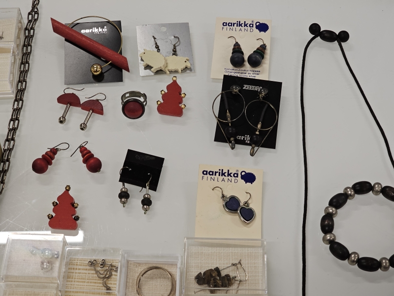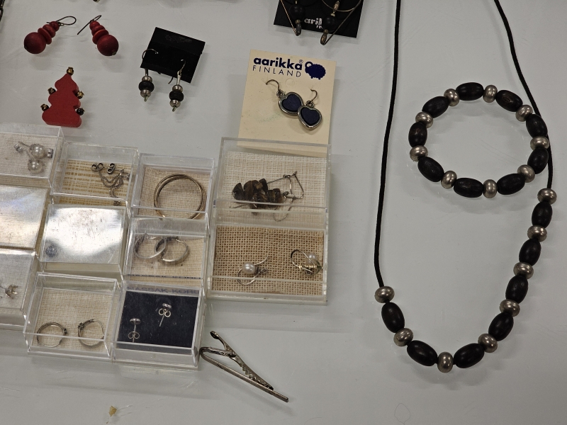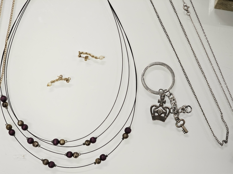 #1564 Erä koruja joista vähäinen määrä hopeaa + 14k kultaiset korvakorut [br. 0,82g]