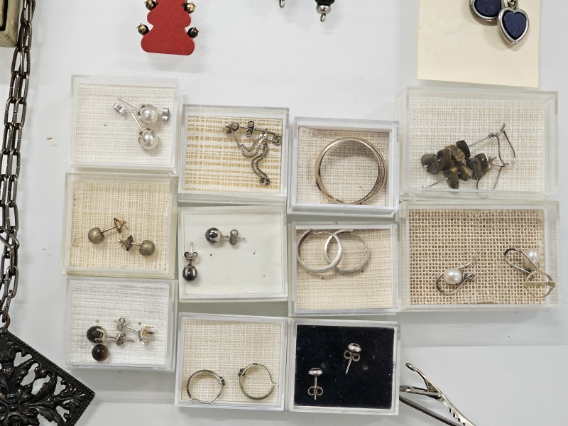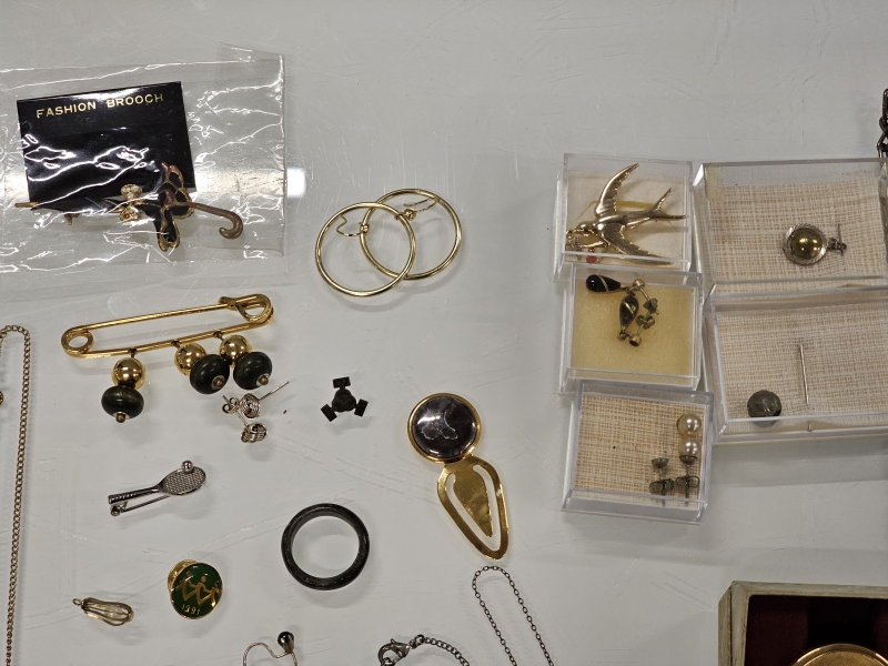 #1564 - Erä koruja joista vähäinen määrä hopeaa + 14k kultaiset korvakorut [br. 0,82g]