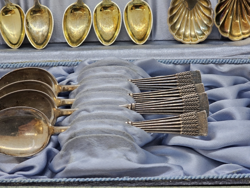 #1530 Erä hopeisia lusikoita, mm. Tähkä -sarjaa, 813h, 136g