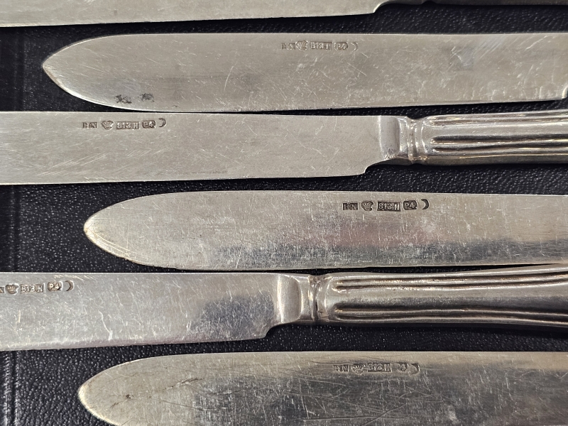 #1531 Hopeiset chippendale -kakkuottimet [120g] + 6kpl veitsiä [106g]