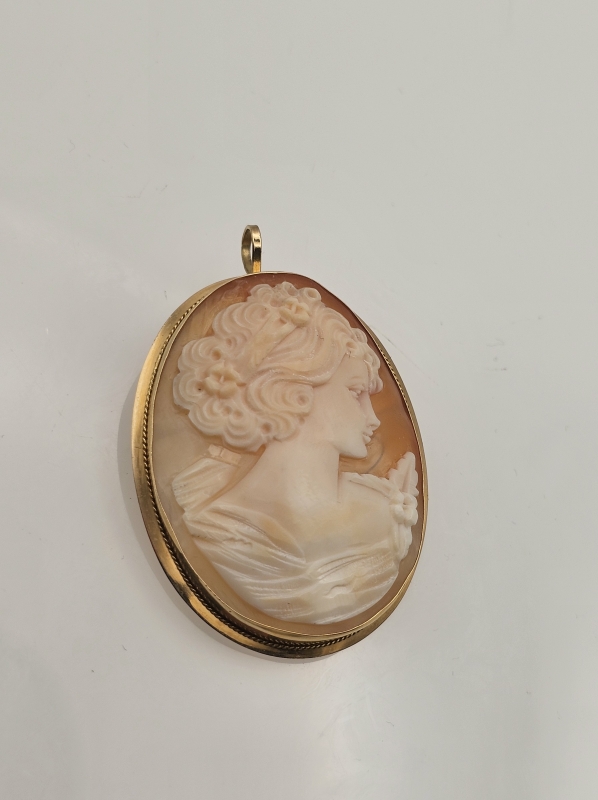 #1593 18k kultainen camee rintakoru / riipus, 6,86g