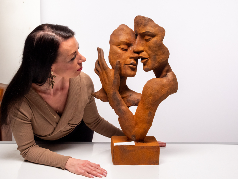 #2333 Patinoitunut valurautainen patsas "Rakastavaiset"