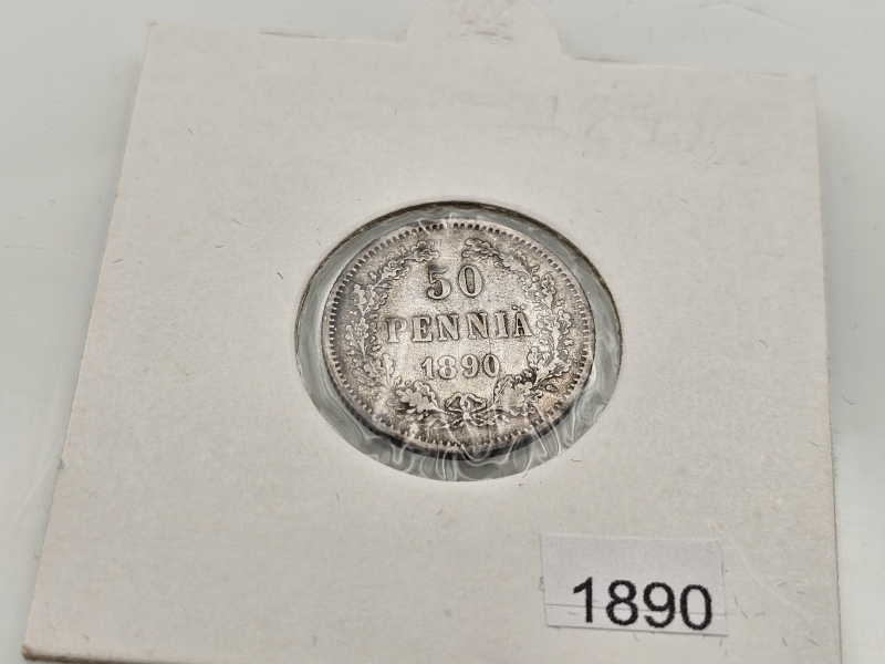 #1542 Hopeisia suomalaisia 25p, 50p rahoja, mm. variantit I ja II. 750h, 103g