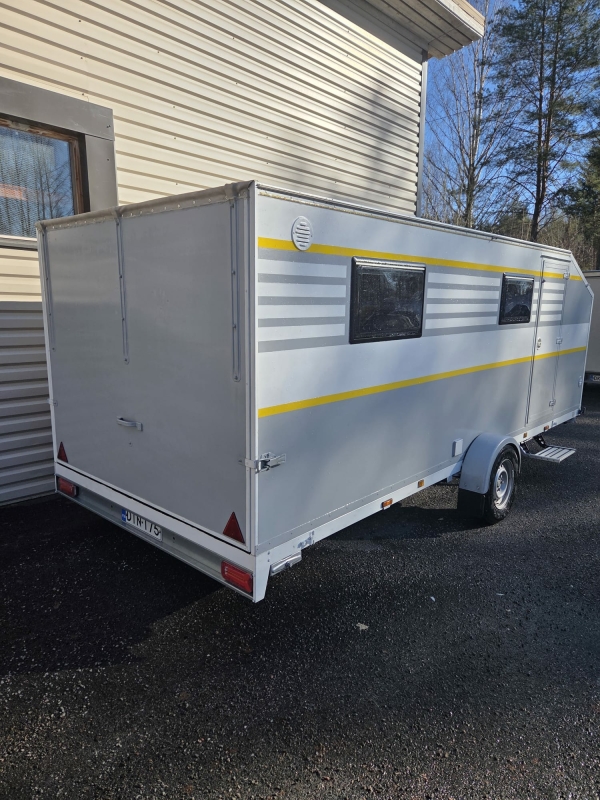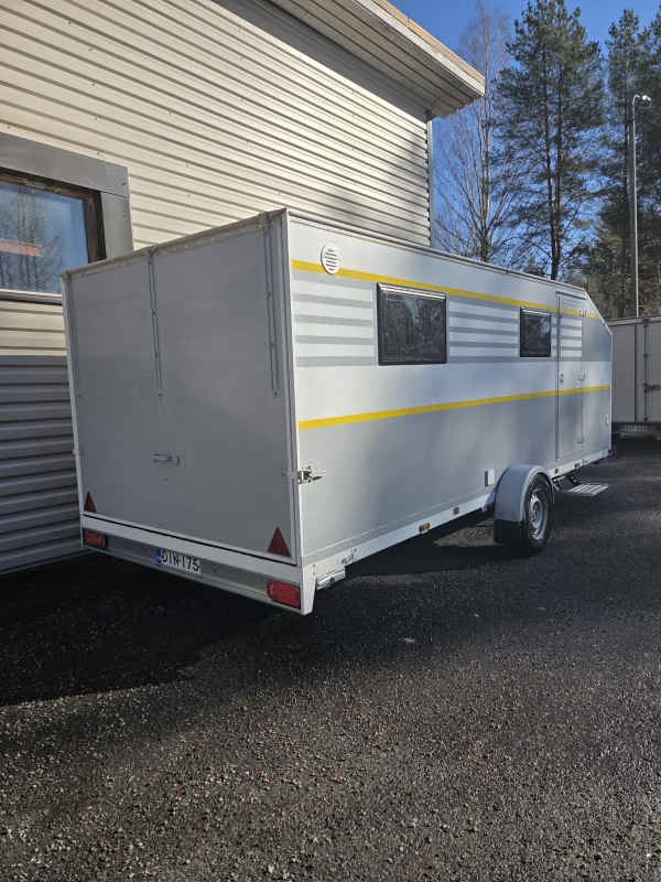 Vaunun kantavuus 500kg, kaasuton, kaikki toimii sähköllä, polttoainekäyttöinen lisälämmitin / sähkö.