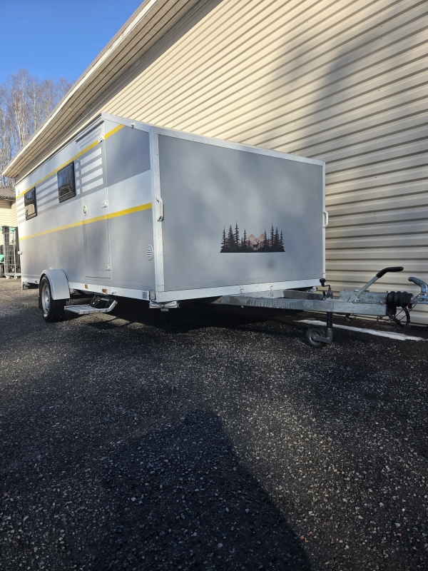 TÄMÄ ON NÄHTÄVÄ LIVENÄ eli uniikki matkailuvaunu, jota voit käyttää myös tavaran kuljetusvaununa. Vaunu on muutoskatsastettu matkailuvaunuksi 2024.
