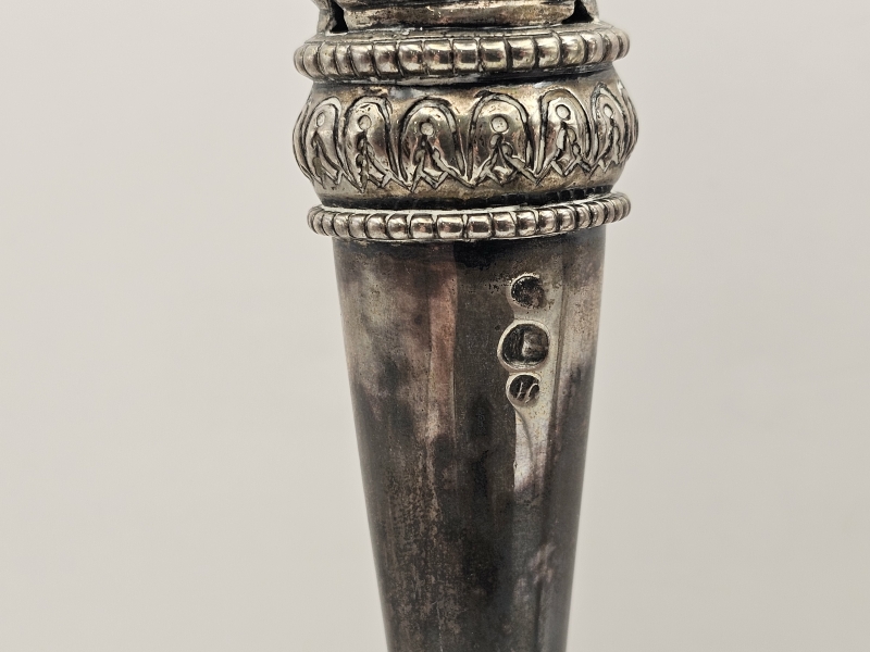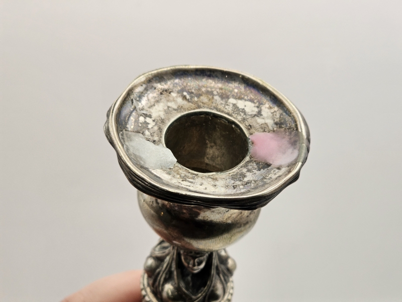 #1546 Hopeiset empire -kynttilänjalat, 1800-luvun alku, 544g