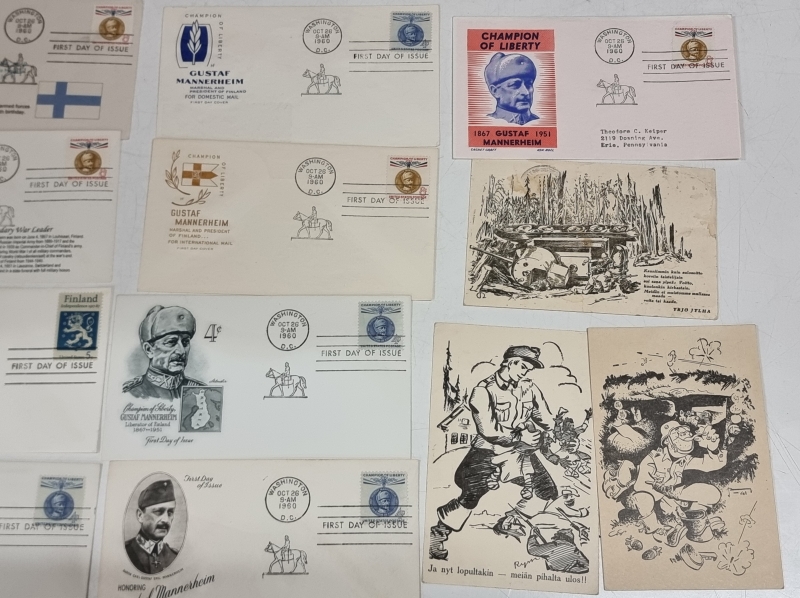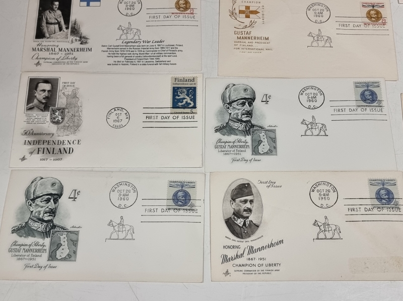 #1642 - 9kpl yhdysvaltalaisia Mannerheim -ensipäiväkuoria + 3kpl postikortteja