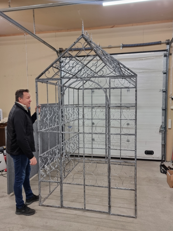 160 cm x 245cm, korkeus koristeen kanssa 297cm. Helppo purkaa ja kasata.