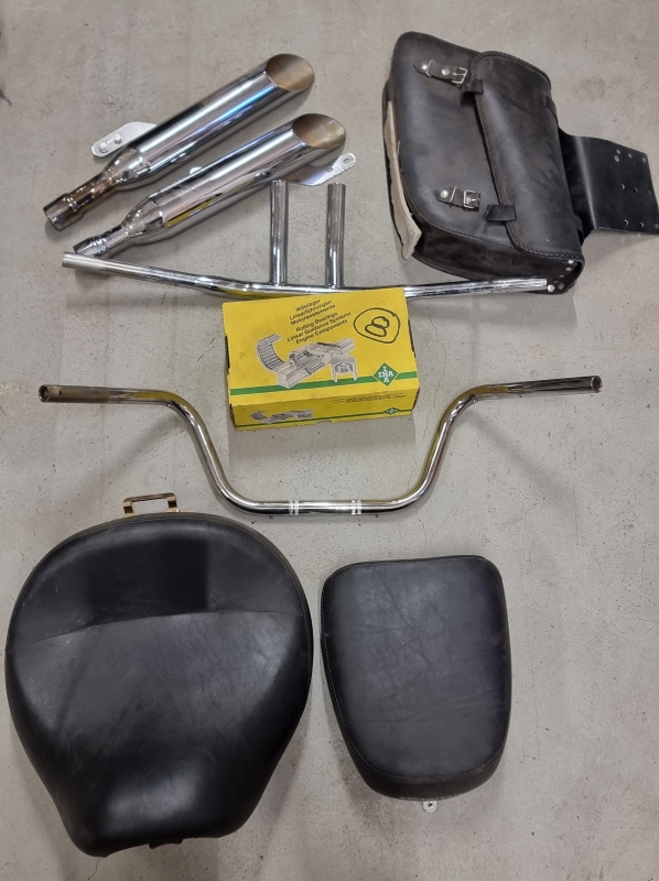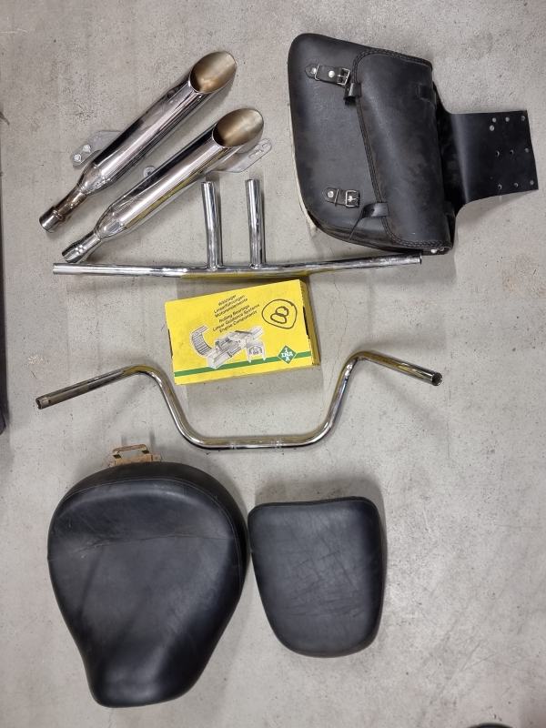 Tuontipyörä USA:sta, ajettu n. 9000mailia, vaihdettu satula, ohjaustanko, pakoputket, tuulilasi, seisonut useamman vuoden, ei katsastettu, ei vakuutusta, Viron rekisterissä. Vaatii huoltoa, myydään projektina. Mukaan varusteita mm. alkuperäiset satulat, ohjaustankoja yms