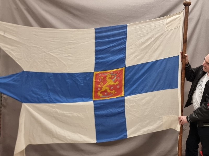 Kulumaa. Lipun pituus 260cm ja korkeus 150cm