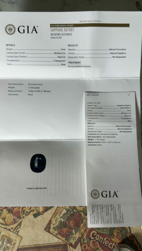 #1184 - 11,92ct sinisafiiri, erittäin tumma + GIA -todistus