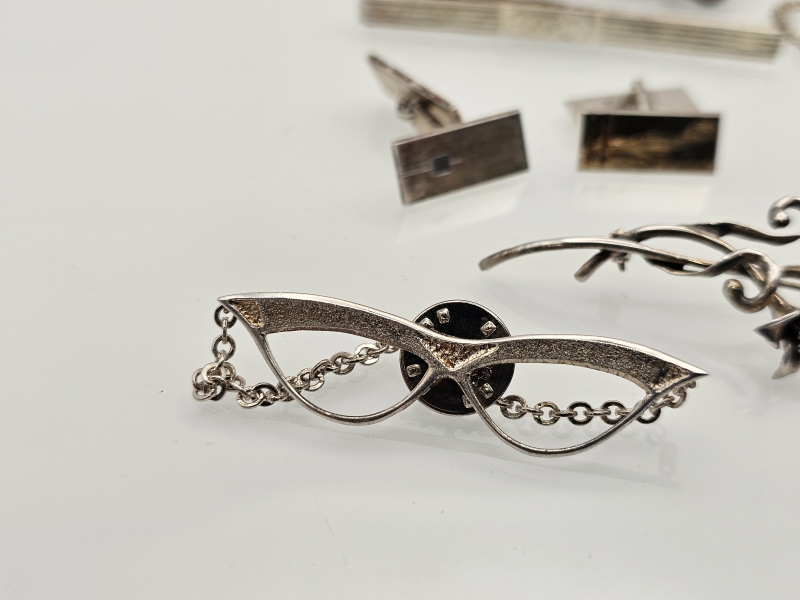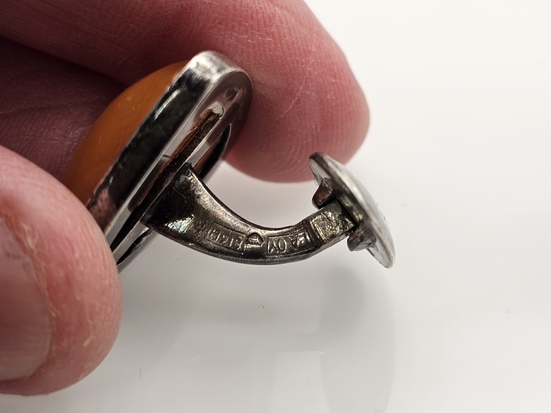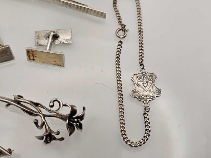 #1633 Erä hopeakoruja: Mm. Meripihka kalvosinnapit
