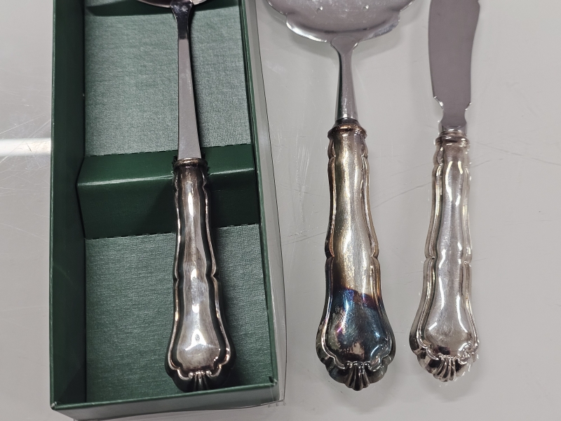 Ei kaiverruksia. Terät terästä, varsi hopeaa