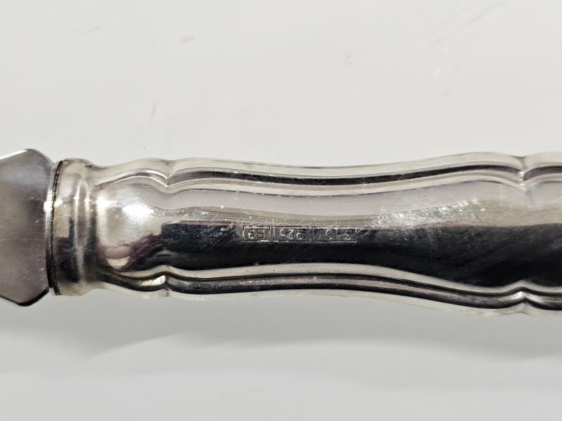 Ei kaiverruksia. Terät terästä, varsi hopeaa