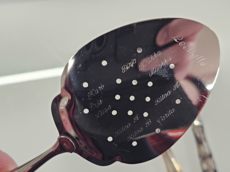 Kalaottimessa kaiverrukset. Teräs / hopea