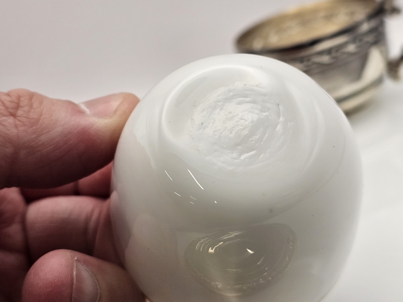 Kuppiosa lasia. Pitoisuus 915/1000. Tassin halkaisija 10cm