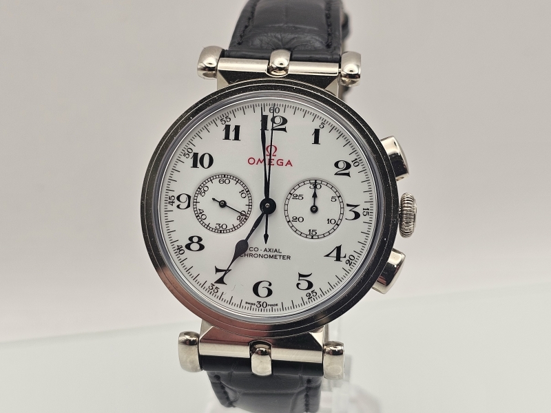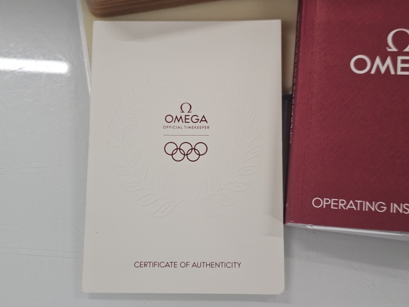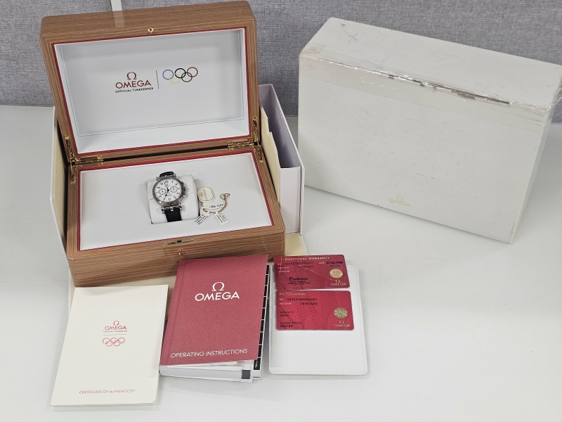 #953 Rannekello: 18k valkokultainen Omega Co-Axial Chronograph Olympic Limited Edition 99/188 Full set